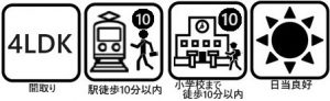 土地面積が約65.19坪の敷地に建つ、間取りは大家族でお住まいの方にもお勧めの4LDKのお家になります。