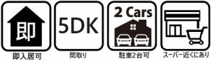 土地面積約27.13坪の敷地に建つ、木造2階建て・5DKのお家になります。