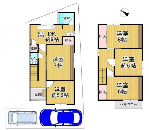 1階に6帖のダイニングキッチンと、洋室2部屋があり、2階には6帖の洋室が3部屋あるので、お子様がたくさんいるご家庭でも、それぞれお部屋を持てますね。