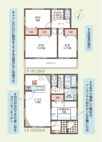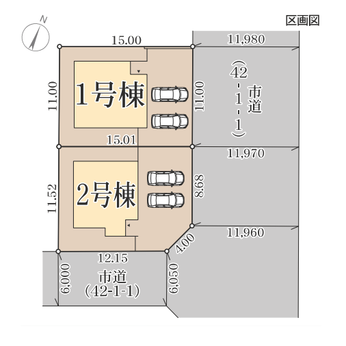 全2棟の内の2号棟、土地面積約51.05坪の敷地に建つ、
