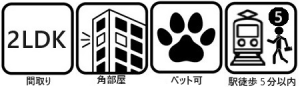 設備・条件 | ペット可能 保証付住宅 角部屋 システムキッチン カウンターキッチン 給湯 独立洗面台 室内洗濯機置き場 オートロック TVドアホン 都市ガス 公営水道 排水下水 エレベータ 駐車場有 バルコニー 【設備その他】 |
