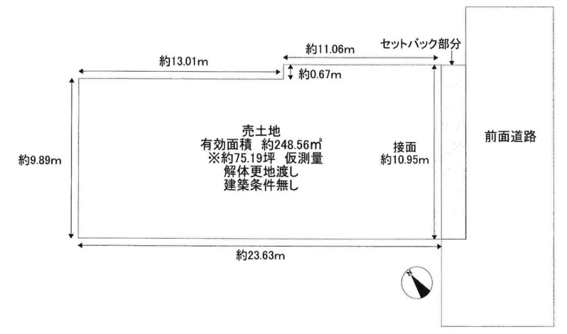 土地面積は約78.45坪とゆとりのある、建築条件無し土地になります。