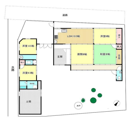 土地面積約88.88坪のたいへん広い敷地に建つ、木造平屋建て/5LDKでお庭のあるお家になります。