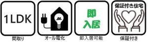 | 設備・条件 | 保証付住宅 IHコンロ 給湯 独立洗面台 温水洗浄便座 室内洗濯機置き場 オートロック TVドアホン 公営水道 排水下水 エレベータ バルコニー オール電化 【設備その他】 ※照明器具・エアコン1台付(残置物) ※告知事項あり |