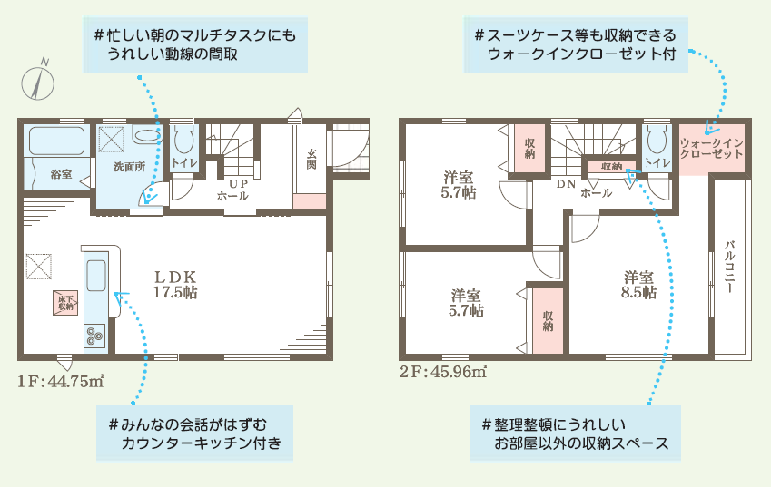 また、リビングから直接洗面所に行ける家事動線の良い間取りで、家事の効率UPだけでなく、忙しい朝のマルチタスクにもうれしい設計です(#^.^#)