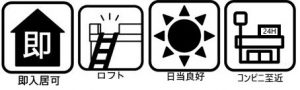 | 設備・条件 | システムキッチン カウンターキッチン 独立洗面台 床下収納 ロフト付き 室内洗濯機置き場 TVドアホン 都市ガス 公営水道 排水下水 バルコニー 【設備その他】 |
