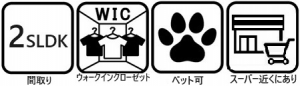 設備・条件 ペット可能 システムキッチン カウンターキッチン 給湯 独立洗面台 W.INクローゼット TVドアホン 都市ガス 公営水道 排水下水 エレベータ バルコニー