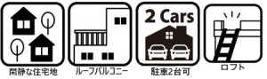 | 設備・条件 | IHコンロ システムキッチン カウンターキッチン 食器洗い乾燥機 給湯 追い焚き 洗髪洗面化粧台 独立洗面台 浴室乾燥機 温水洗浄便座 床下収納 ロフト付き 室内洗濯機置き場 TVドアホン 公営水道 排水下水 バルコニー オール電化 【設備その他】 |