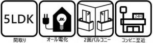 | 設備・条件 | IHコンロ システムキッチン 給湯 独立洗面台 浴室乾燥機 公営水道 排水浄化槽 バルコニー オール電化 【設備その他】 |