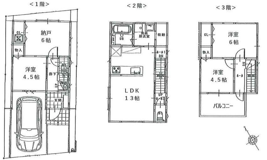 1階には約4.5帖の洋室と約6帖の納戸があり、